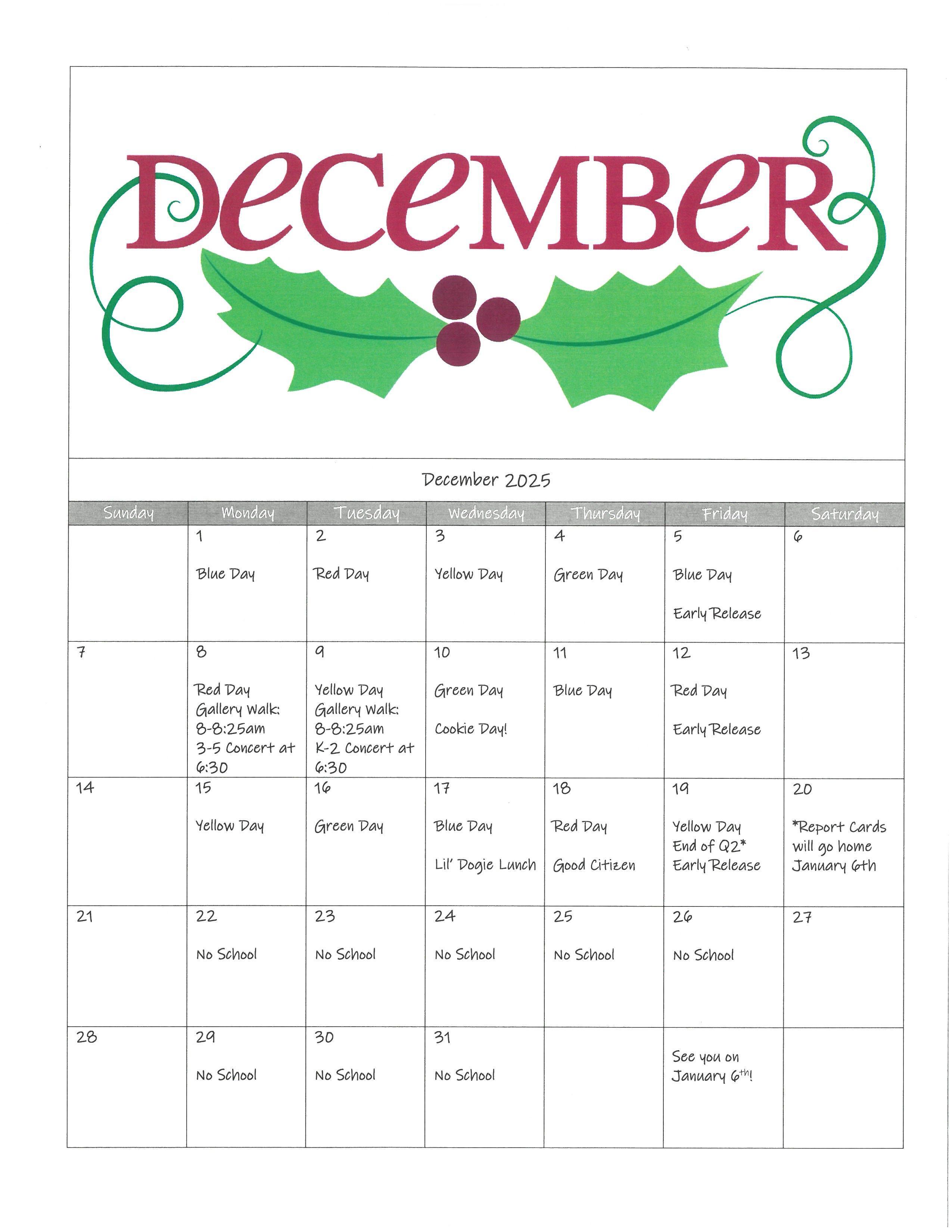 Elementary Events Calendar