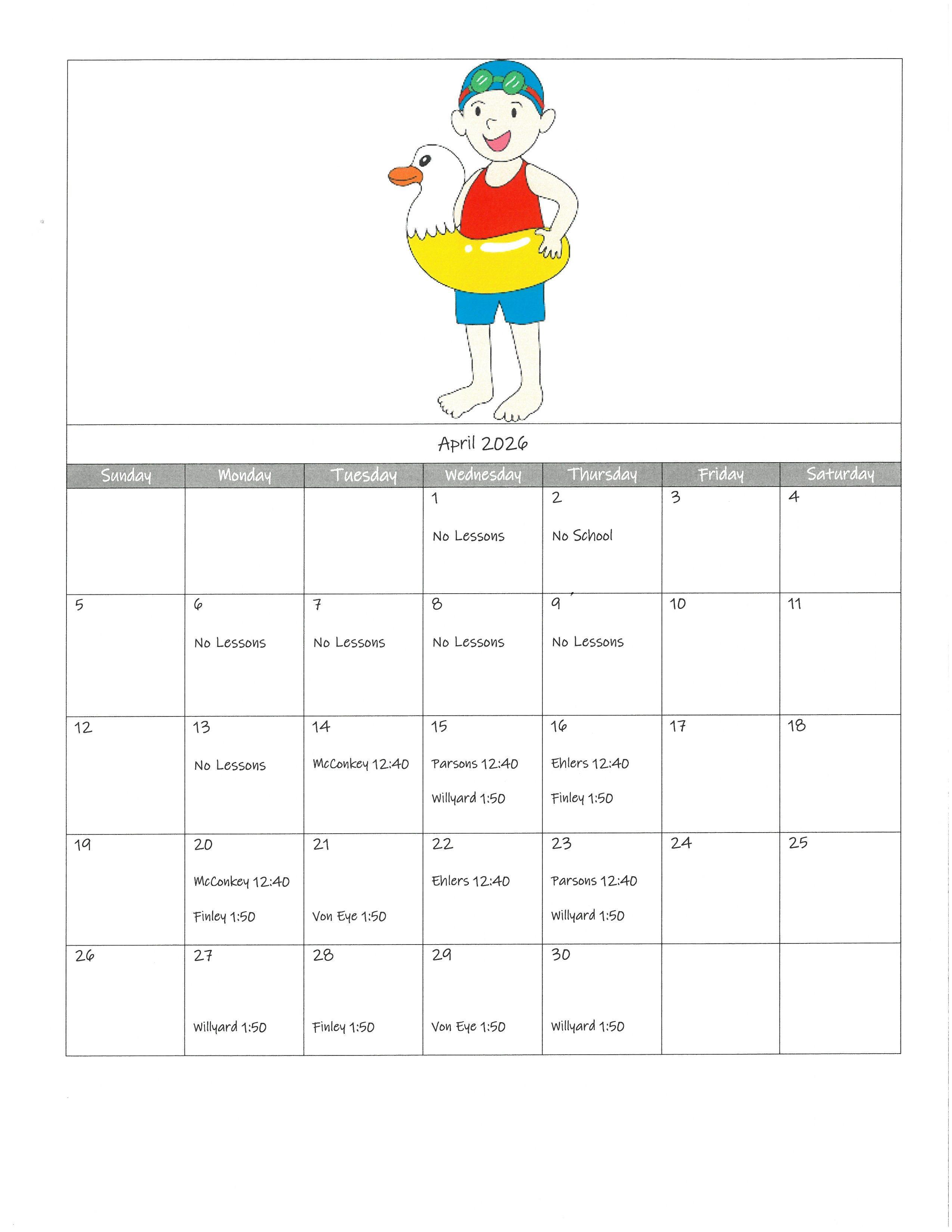 Elementary Events Calendar